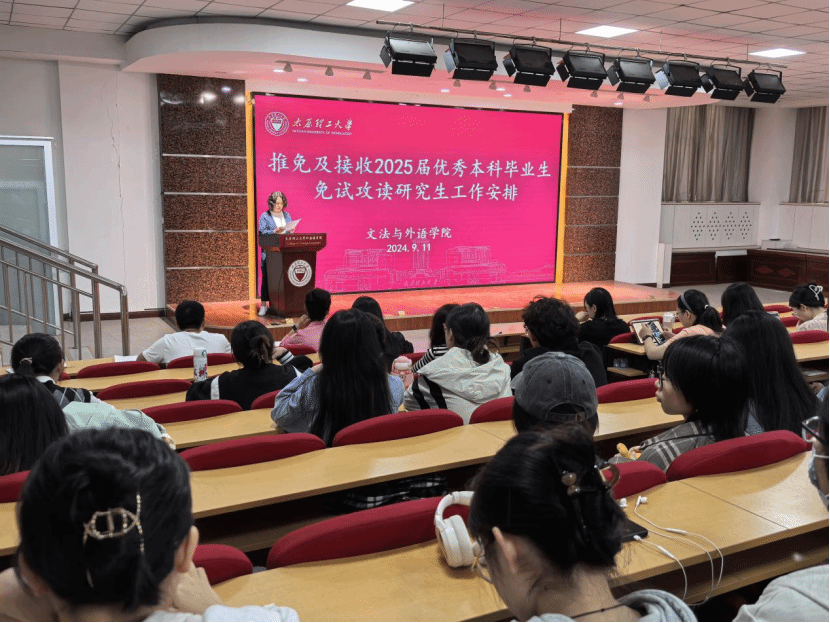为贯彻落实学校关于2025届研究生推免工作,进一步加强学院学风建设,切实做好学院推荐免试攻读研究生工作,澳门十大信誉好的网站于9月13日在一层报告厅进行推免及接收2025届优秀本科毕业生免试攻读研究生工作安排。本次会议由澳门十大信誉好的网站院长段荣娟主讲,党委副书记杨雪芬、毕业生辅导员及全体2025届具有保研资格毕业生参会。