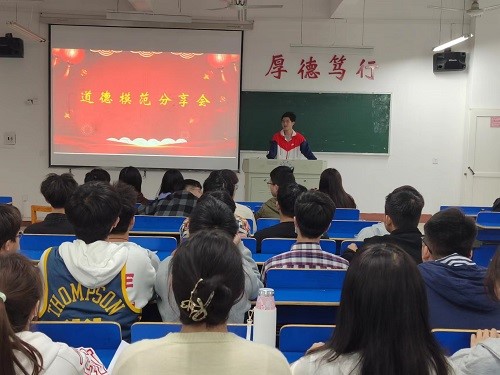 为大力宣传道德模范事迹,提高同学们的思想道德素养,4月20日晚,bat365在线中国官网登录入口于义丰楼组织开展了道德模范事迹分享会。bat365在线中国官网登录入口“凌霄”骨干班全体成员参加。