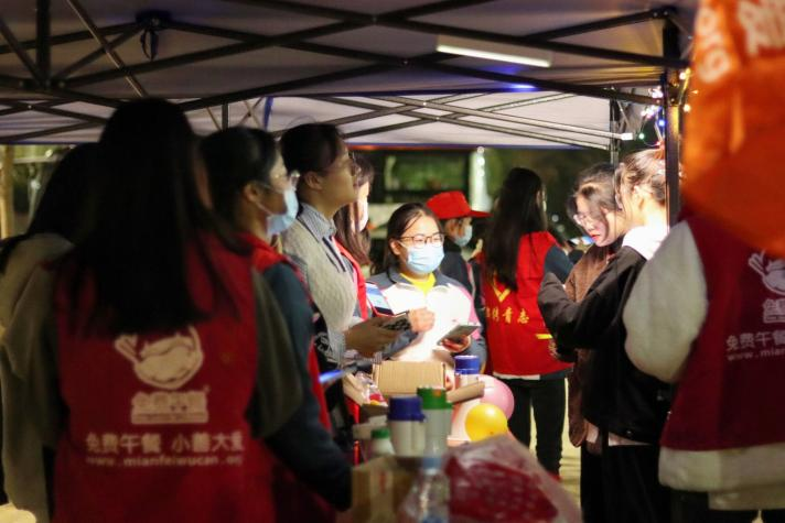 晚上七点半,同学们准时抵达荧光漫步起点---北区田径馆门口,在了解清楚活动的流程和规则,拿到志愿者发放荧光棒和气球,扫完起点处的签到码后,开始了荧光漫步活动。所有参与者一起出发,他们手带荧光手环和五颜六色的气球,把整个校园装点成一个荧光闪耀的欢乐海洋,涌动的荧光队伍形成了一道道亮丽的风景线。在沿途也设立了四个签到点,每个签到点都有各自的任务和签到码,同学们都认真完成活动发布的任务,这个过程中不仅为同学们提供了良好的交友环境,也缓解了同学们的学业压力,大家欢声笑语,为夜晚时分的九院增添了一片青春的活力。九点左右,参加活动的同学都抵达了终点,志愿者们为其发放了参与的小奖品,并提倡同学们捐出今天的步数来支持免费午餐计划,这赢得了同学们的欢呼和感谢。