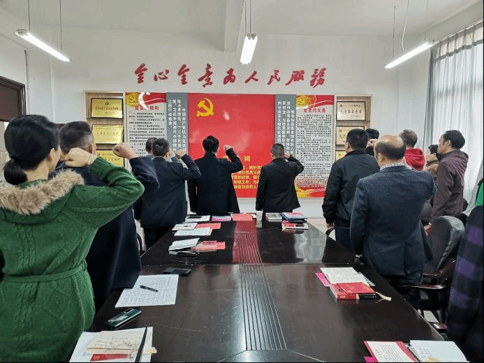 活动最后,在“寿星”党员杨盛标同志代领下,全体党员重温入党誓词。同志们热血沸腾、精神饱满地一起