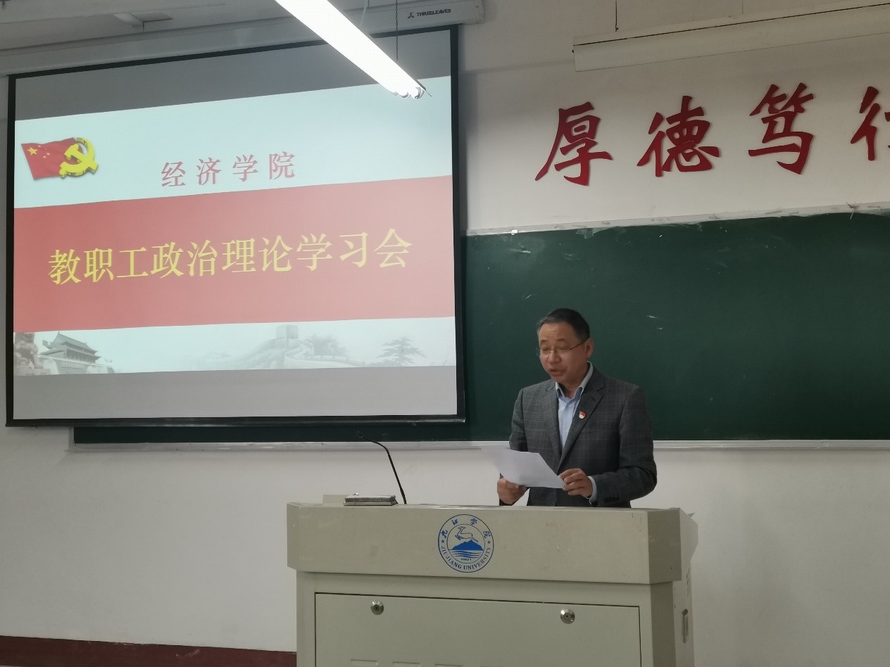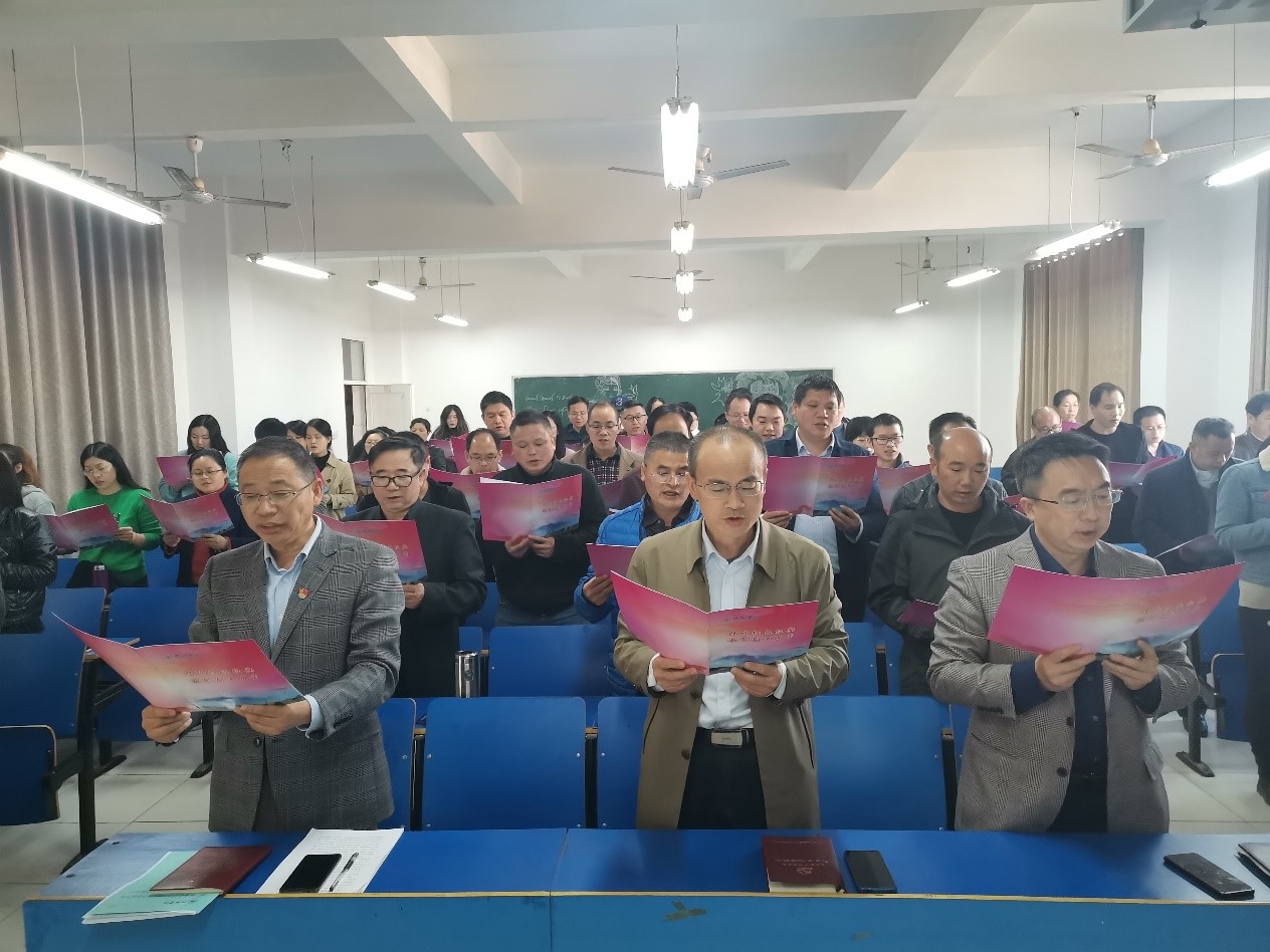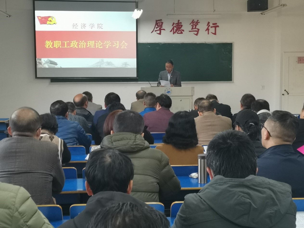 11月17日下午,bat365在线中国官网登录入口全体教职工在义丰楼502召开政治理论专题学习会,学习党的十九届六中全会精神,bat365党委班子成员和全体教师参加了此次学习会,会议由党委书记漆晗东主持。