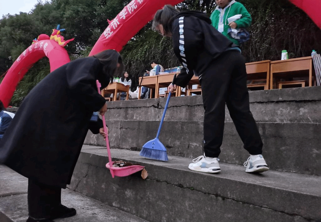 本次活动由青年志愿者大队的队员们负责。志愿者们忙碌于运动场的每一个角落,维护现场秩序,打扫现场卫生,以端正的态度为老师和同学服务,展现了“团结、友爱、奉献、进步”的志愿者精神和当代青年乐观积极心态。