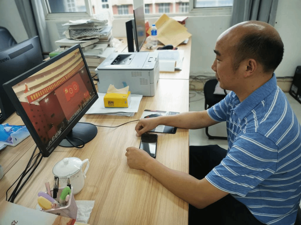 7月1日下午3时,江西省庆祝中国共产党100周年大会在井冈山隆重举行,bat365在线中国官网登录入口组织行政科室所有教职工集中观看这一盛况。各教研室教师们通过网络、电视、手机客户端等各类媒介进行观看,共同庆祝中国共产党百年华诞。