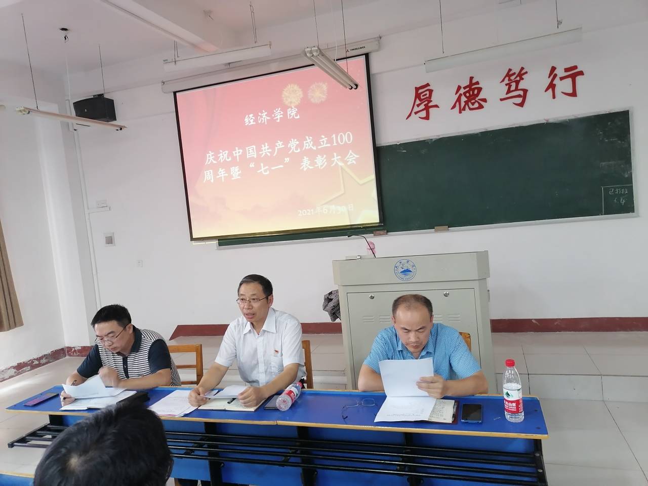 6月30日下午,bat365在线中国官网登录入口在义封楼502举行庆祝中国共产党成立100周年大会暨“七一”表彰大会,共同庆祝中国共产党百年华诞。党委书记漆晗东、院长项益才及学院全体党员出席大会,会议由副院长李华主持。