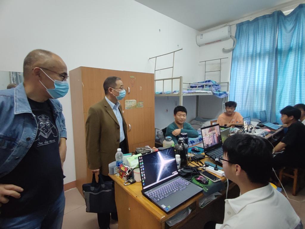 在学生宿舍,漆书记与学生亲切交谈,详细询问学生们的家庭状况、学习和生活情况。并叮嘱学生有困难一定要及时与学校反映,表示学校将运用各种资助措施帮助困难学生顺利完成学业。还表明了当前疫情严峻形势,希望同学们严格遵守学校疫情防控要求,按时做好核酸检测,锻炼自身体能。最后对宿舍卫生及宿舍安全提出要求及给予建议。同时鼓励学生要树立信心,自立自强、乐观向上。