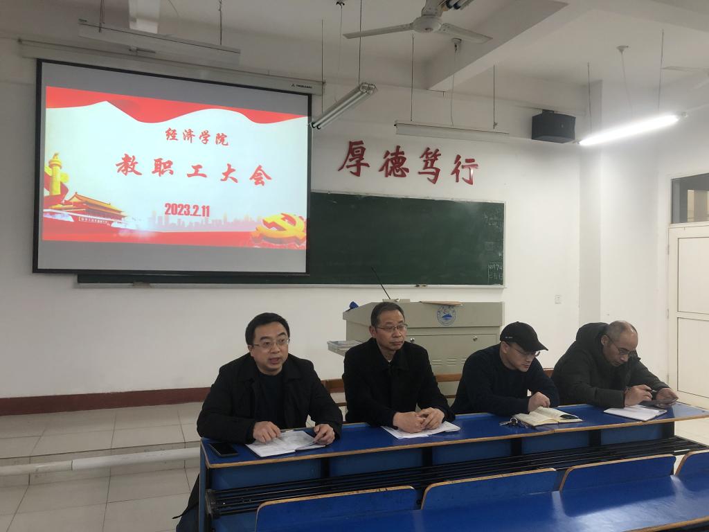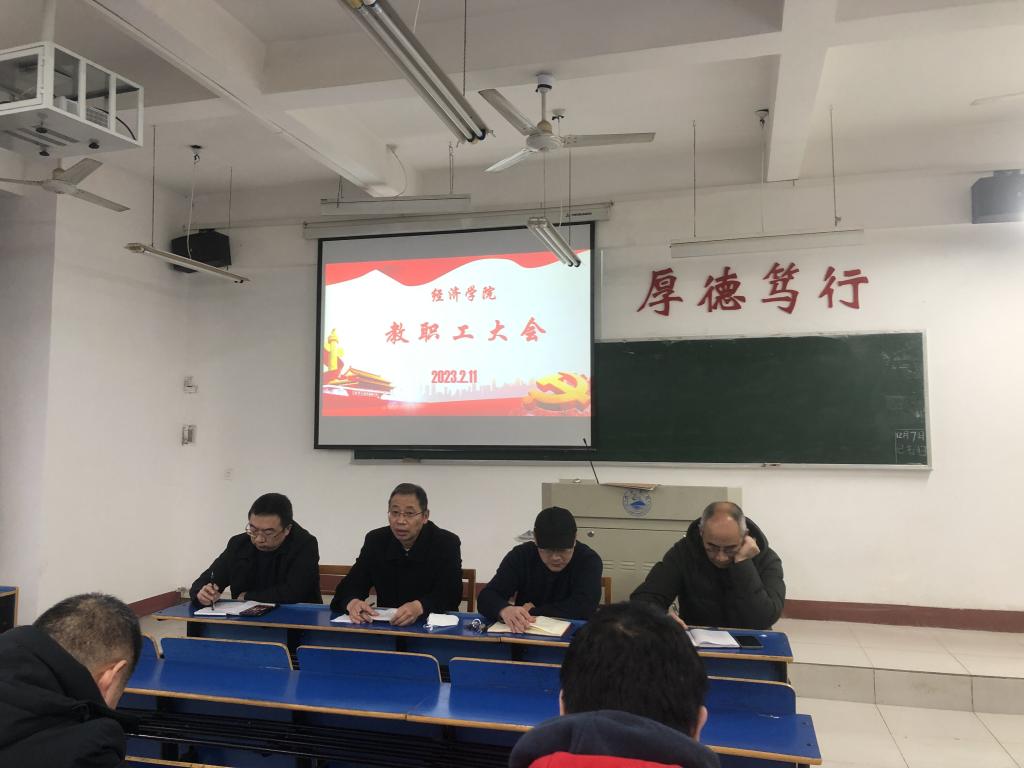 2月11日下午,bat365在义丰楼502召开教职工大会,会议由党委书记漆晗东主持,领导班子成员和全体教师参加。