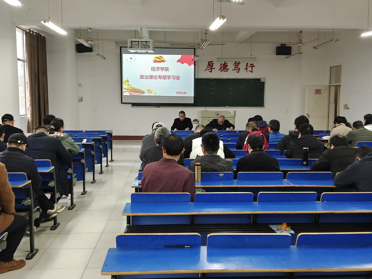 3月29日下午,bat365在线中国官网登录入口在义丰楼502室召开政治理论学习会,全院教职工参加会议,会议由党委书记漆晗东主持。