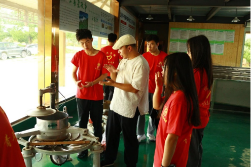 实践队在“云雾茶”生产车间,了解了茶叶的生产流程和加工设备,学习了云雾茶加工的杀青抖散、揉捻初干、理条搓条、拣剔提毫等工序。通过实地参观学习,队员们感受到了制茶工序极其复杂,制茶也是一门艺术活,需要不断的细节把控和创新突破。