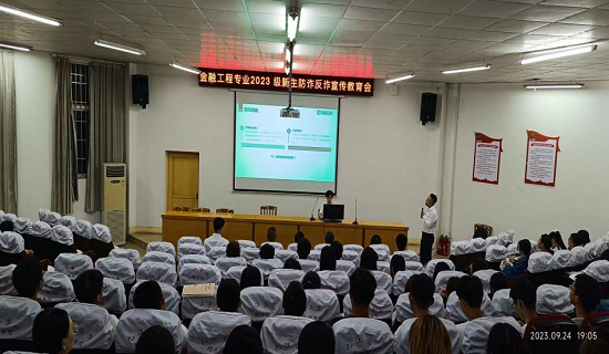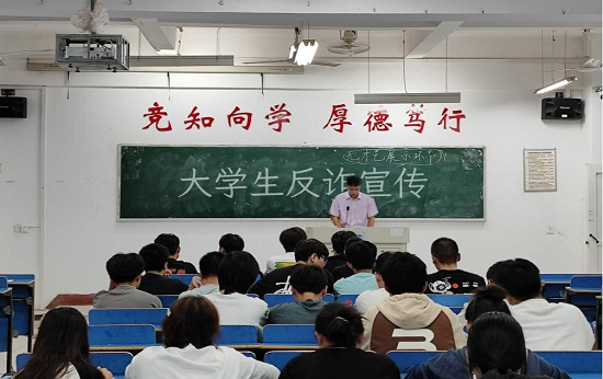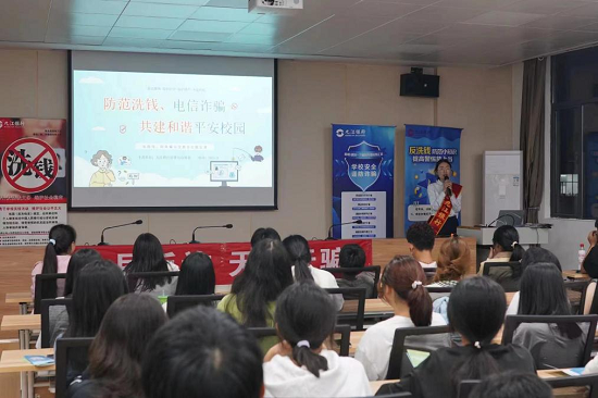 9月份开学季,bat365在线中国官网登录入口先后邀请中国邮政储蓄银行、九江银行、中国农业银行、国新证券等银行金融机构,通过发放宣传页、专门讲座、情景剧沉浸式演绎、主题班会等多种方式“以案释法”,对校园中常见的刷单诈骗、网络交易诈骗、冒充熟人诈骗、网络贷款诈骗、网络交友类诈骗等常见诈骗手段的新形势、新手法进行详细解读,并结合学生实际群体重点讲解了非法出租、出售自己的银行卡、身份证等证件供他人使用的行为造成的危害等。