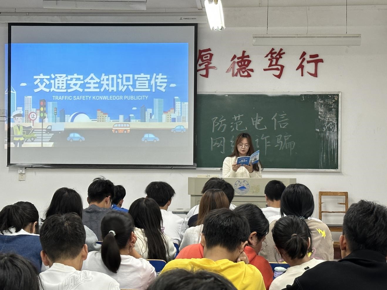 为了提高同学们对于交通安全的重视,加强交通安全意识,提高文明出行素养。10月12号晚上,bat365在线中国官网登录入口于义丰楼,组织各班级开展“道路安全宣传”主题活动。