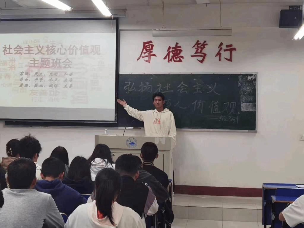 为了引导学生培育和践行社会主义核心价值观,建立正确的世界观、人生观、价值观。3月19日晚,bat365在线中国官网登录入口于义丰楼开展了以“社会主义核心价值观”为主题的班会。