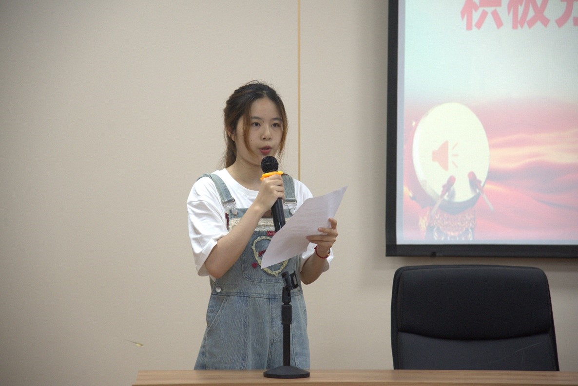 会上,A2342班姜嘉馨同学代表全体入党积极分子发言。她讲到,作为新时代青年,应当切实提高自身的思想素质和道德修养,勇于肩负起时代赋予的重任。同时,她表达了对中国共产党的向往,希望未来可以与大家共勉,坚定信仰,向党组织积极靠拢,在理想信念上保持“不忘初心”的定力。