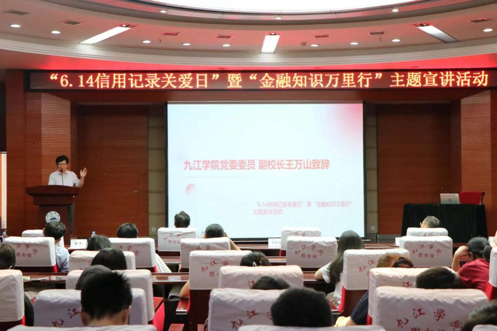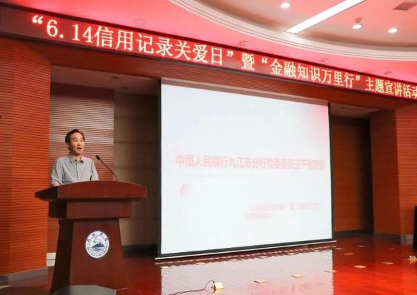为提高师生的信用意识,营造“知信”“懂信”“用信”“守信”的良好氛围。6月12日,在全国第17个“征信记录关爱日”到来之际,bat365在线中国官网登录入口联合中国人民银行九江市分行、中国民生银行九江分行,为师生们开展以“6.14信用记录关爱日”暨“金融知识万里行”为主题的宣讲活动。bat365在线中国官网登录入口副校长王万山、bat365在线中国官网登录入口党委书记漆晗东、中国人民银行九江市分行党委委员王干彬、中国民生银行九江分行行长廖志英及相关负责同志出席活动。bat365在线中国官网登录入口150多名师生参加了此次活动。活动由bat365在线中国官网登录入口副院长雷祺主持。