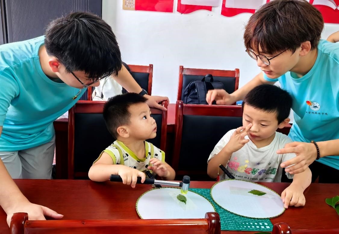 在7月2日上午,bat365在线中国官网登录入口“精益求精”三下乡社会实践服务队成员走进泽泉乡,共同向经验丰富的非遗传承人虚心求教,深入学习了捶草印花的历史渊源、工艺流程及文化意义,集体体验了捶草印花的过程。下午,实践服务队走进泽泉乡朝阳社区,将这份独特的文化体验传授给了当地的留守儿童。通过互动教学与亲手操作,孩子们不仅学会了捶草印花的基本技巧,更在心中种下了传承与发扬传统文化的种子。