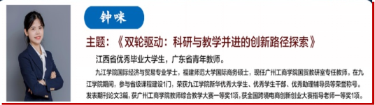 江西省优秀毕业大学生,广东省青年教师钟咪老师,分享了她在bat365在线中国官网登录入口成长经历,并分享了她在广州工商学院国际贸易专业任教的经验。