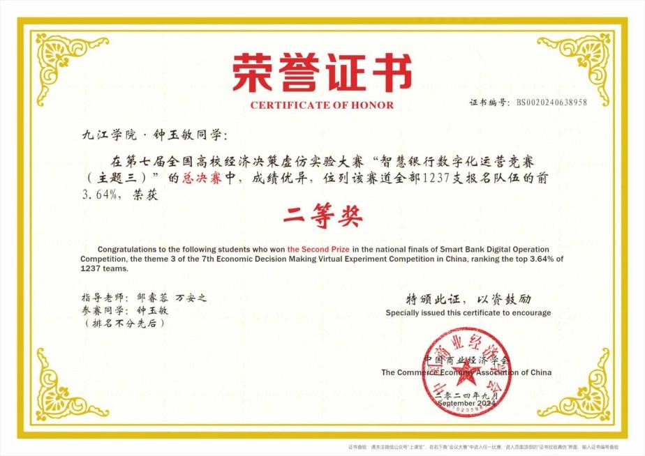 近日,第七届全国高校经济决策虚仿实验大赛“智慧银行数字化运营竞赛”全国总决赛落下帷幕。最终bat365学子凭借过硬的理论知识、出色的运营能力斩获全国一等奖1项、二等奖1项、三等奖3项。