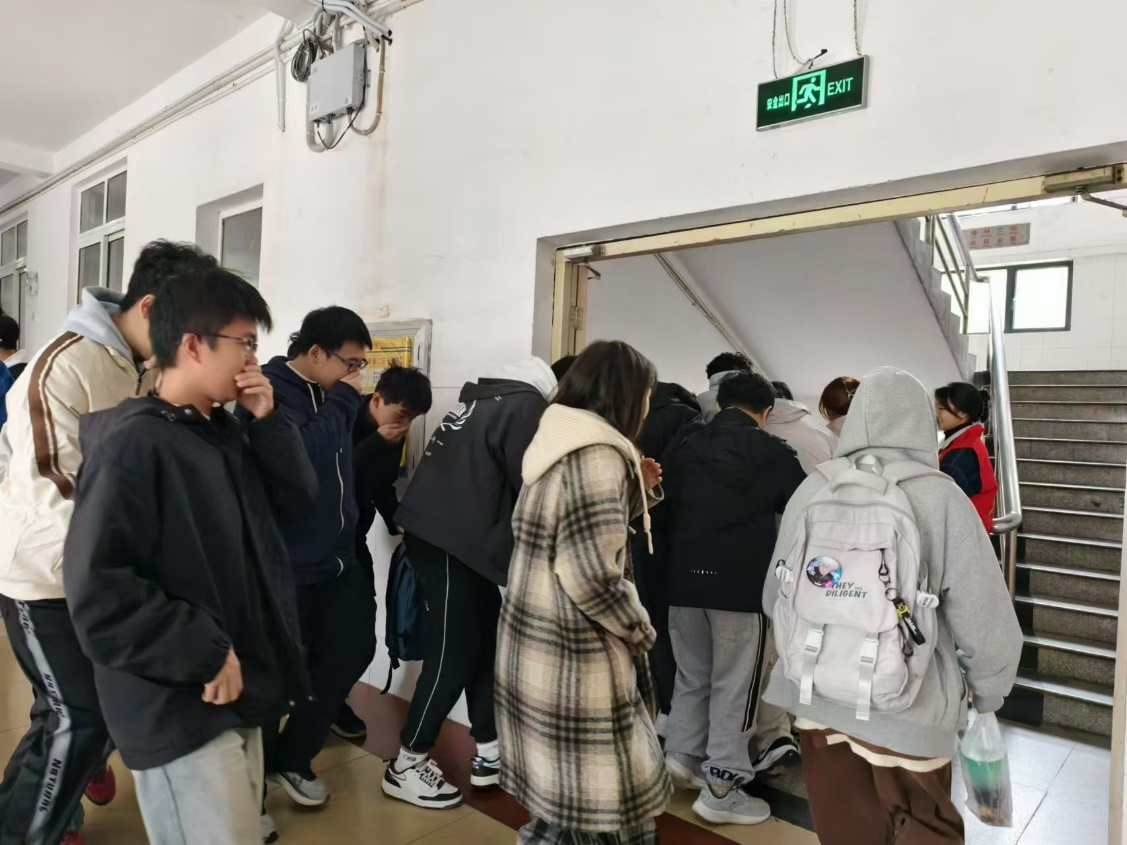 本次消防演练活动以模拟火灾现场开展,旨在加强bat365在线中国官网登录入口全体师生的应急逃生能力。消防演练活动开始之后,处于义丰楼的师生迅速做到弯腰、低头,用手捂住口鼻。与此同时,师生们在志愿者的引导下,按照预先制定的疏散路线进行撤离。在疏散期间,师生们严格遵循“不推不挤、快速疏散”的原则,迅速而有序地从教室撤离到指定的安全区域。整个过程组织严密,紧张有序,各环节紧密配合,达到疏散演练目的。