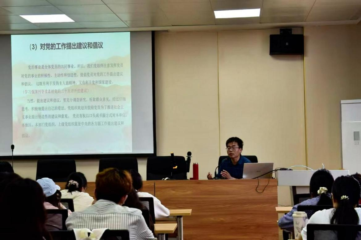 此次党课邀请了马克思主义学院的邹菊如教授进行专题授课。邹菊如教授以进一步明确党员权利与义务,争做新时代合格共产党员为题,通过以小见大的形式、深入浅出的讲解以及先进模范人物案例的生动呈现,带领学员们深入学习了党的理论知识,和身为党员应承担的责任与义务在课堂上,邹菊如教授还着重强调了党员的责任与担当,以及如何树立正确的入党动机。他指出,入党积极分子要时刻以党员的标准严格要求自己,不仅要在组织上入党,更要在思想上入党,真正做到知行合一。同时,要将党的理论知识与实际工作相结合,在工作中发挥先锋模范作用,全心全意为人民服务。