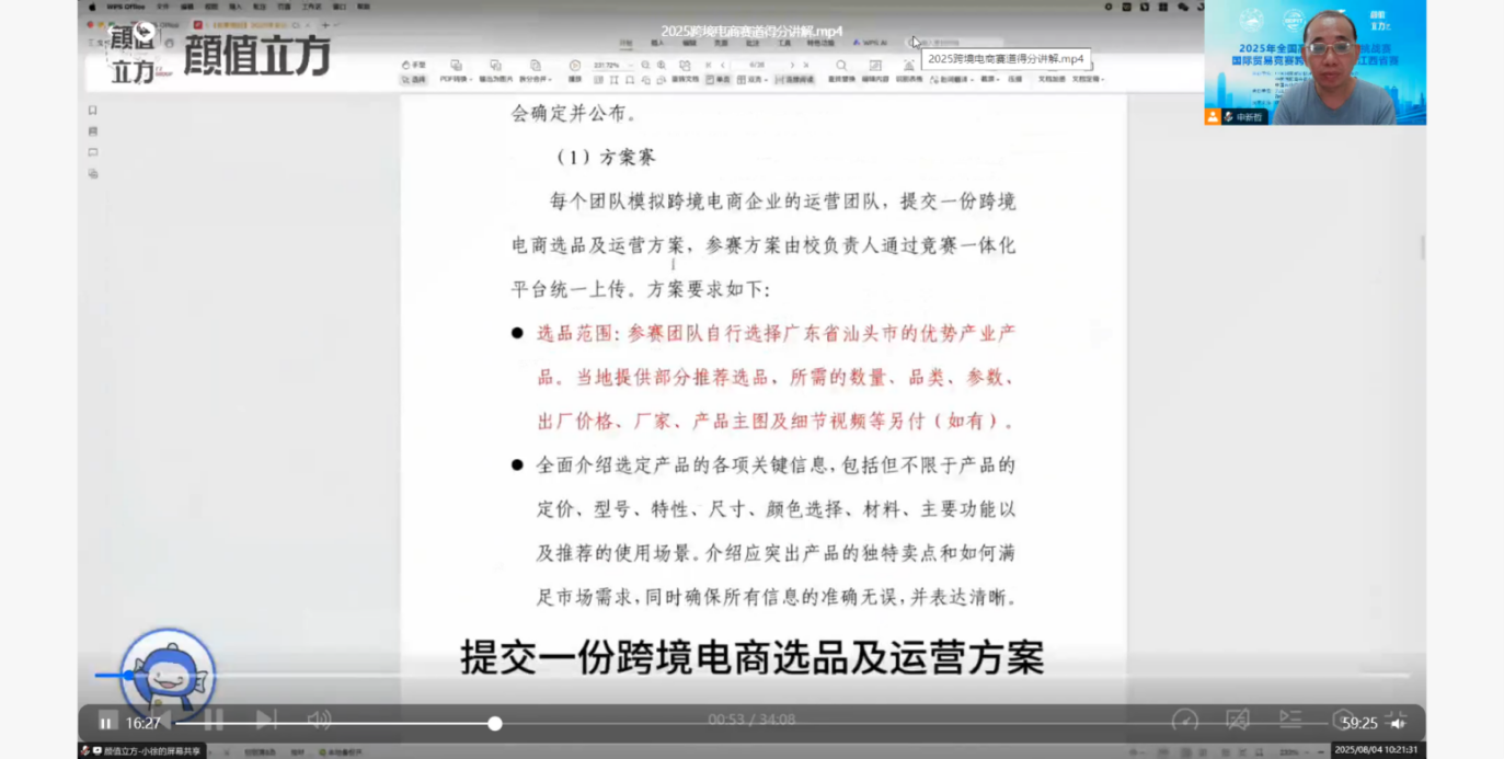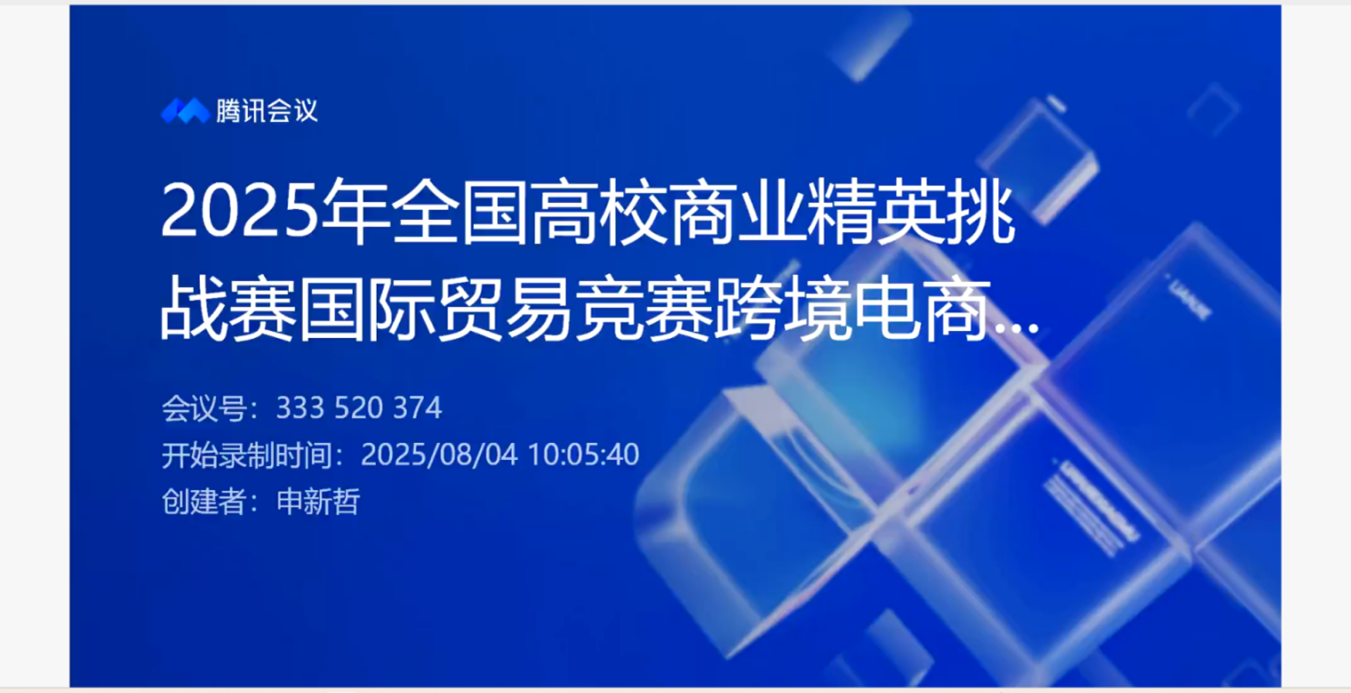 2025年8月4日上午10:00至12:00,2025年全国高校商业精英挑战赛国际贸易竞赛跨境电商赛道江西省赛启动仪式以线上会议的形式在bat365在线中国官网登录入口隆重举行。中国贸促会商业行业委员会教育培训部副部长何倩、bat365在线中国官网登录入口副院长雷祺、颜值立方(厦门)产教融合科技集团有限责任公司研发总监王子瑜、bat365在线中国官网登录入口国际经济与贸易系主任闫观渭以及bat365在线中国官网登录入口参赛师生齐聚线上,共同见证全国高校商业精英挑战赛国际贸易竞赛跨境电商赛道江西省赛赛事启动。