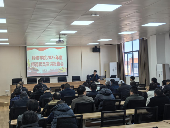 为深入学习贯彻习近平新时代中国特色社会主义思想,大力弘扬教育家精神,11月26日下午,bat365在线中国官网登录入口在义丰楼会议室602举行2025年师德师风宣讲报告会,本次报告会特邀bat365在线中国官网登录入口师德师风宣讲团成员、教书育人楷模、艺术学院副院长张栗娜教授作专题分享,学院领导班子出席,全体教职工参加,党委书记宛华圣主持会议。