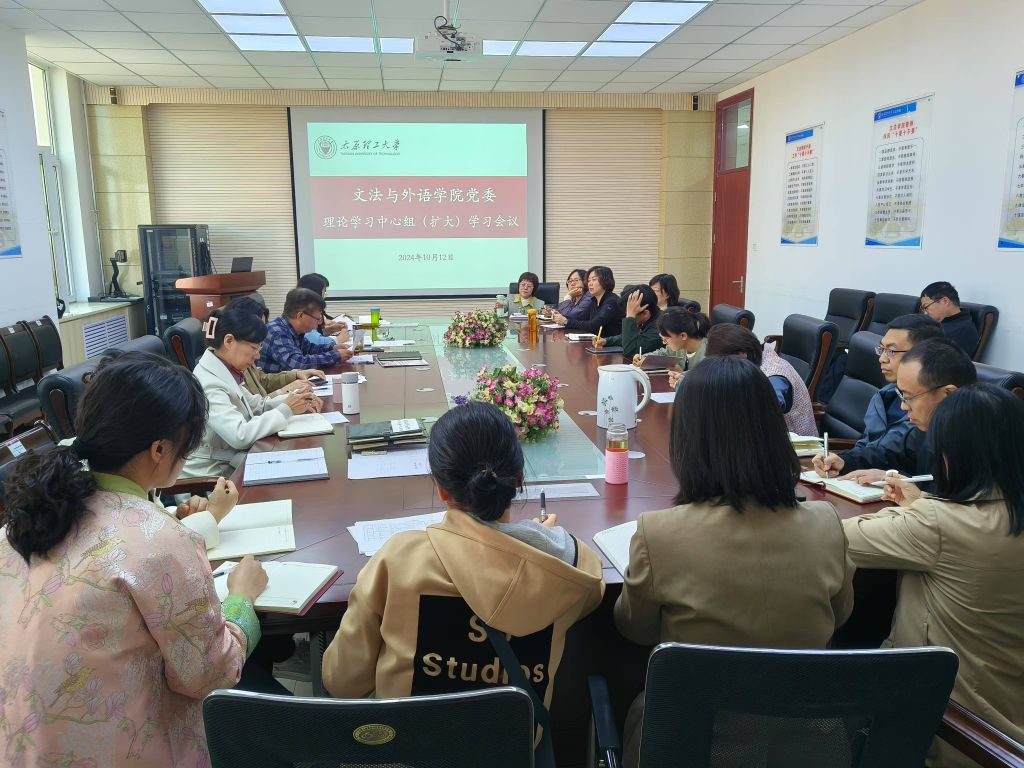 10月12日,澳门十大信誉好的网站党委在学院会议室召开2024年第二次理论学习中心组(扩大)会议。学院党政班子成员、各支部书记以及系部中心所主任参加会议。会议由党委书记申晓东主持。