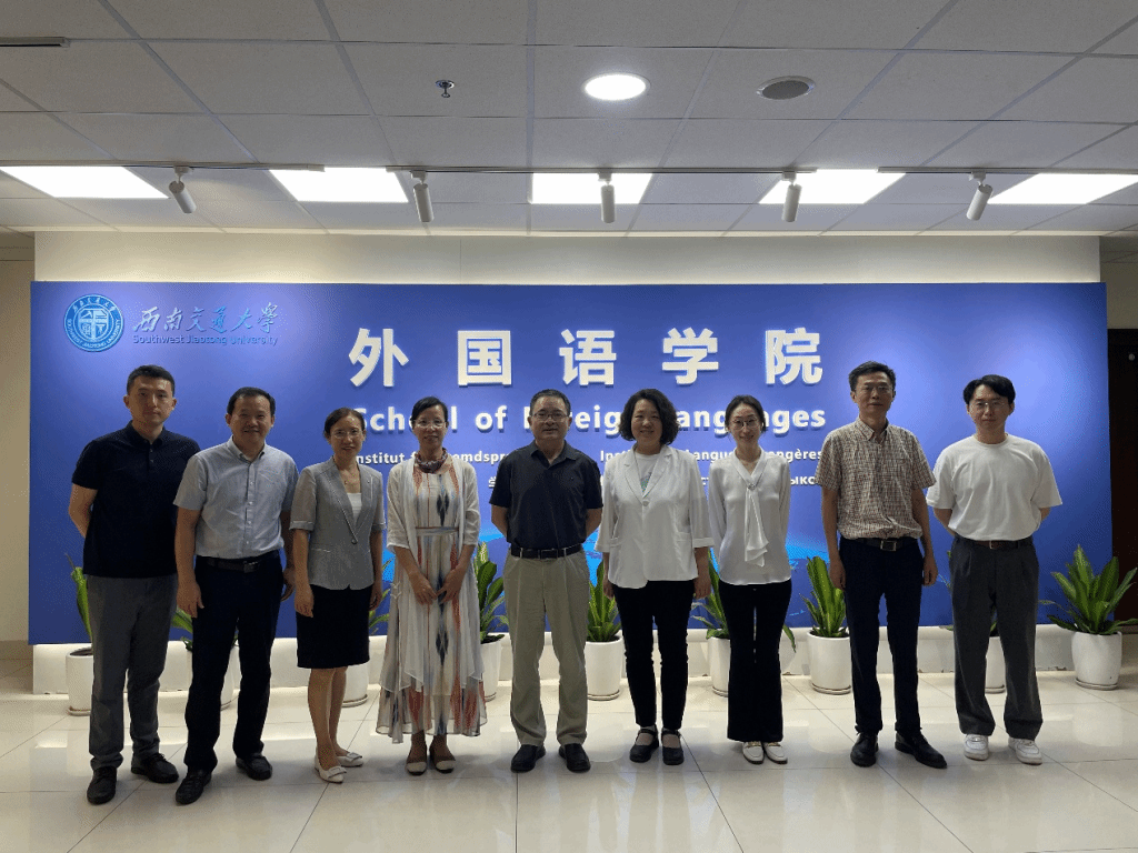 为深入贯彻落实新文科建设理念,进一步拓展学科发展思路,2025年6月18日,我院一行赴西南交通大学外国语学院开展调研交流。学院院长段荣娟、副院长张海燕带队,青年教师代表薛梅、陈瑨琰随行参加。西南交通大学外国语学院院长俞森林、教学副院长易红、科研副院长余清秀以及各系部负责人共同参会。此次调研活动是我院深化与国内高校交流合作的重要举措。