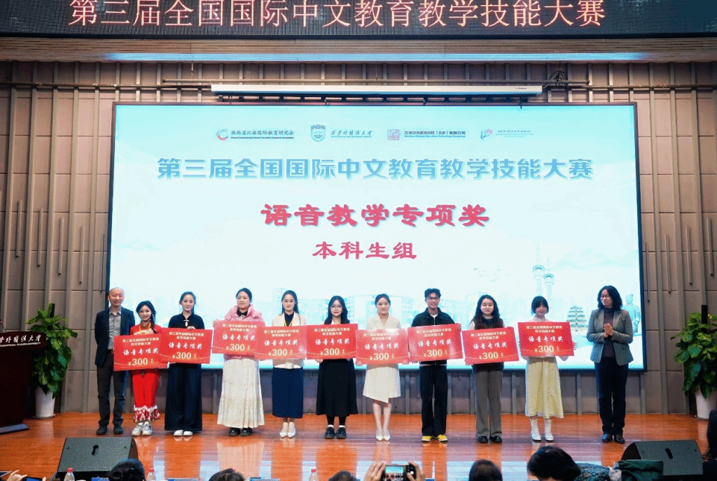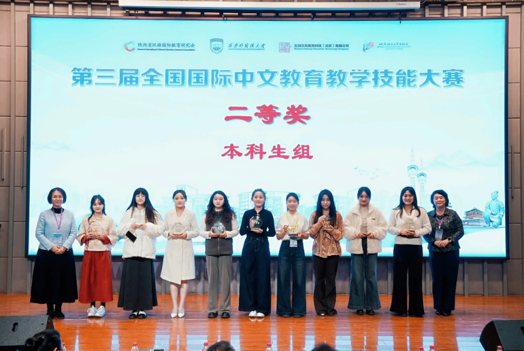近日,第三届全国国际中文教育教学技能大赛圆满落幕。11月21日-23日,我院刘思彤、李东芳、祝惠芸、何佳薇四位学子在带队教师史钰及指导教师岳莉卿、于融的悉心指导下,肩负学院期望与嘱托前往西安参赛。四位选手凭借扎实的专业学识、精巧的教学设计及出色的临场表现,在全国各高校参赛队伍的激烈角逐中脱颖而出,最终斩获二等奖1项(刘思彤)、三等奖2项(祝惠芸、何佳薇)、优秀奖1项(李东芳)及语音专项奖1项(刘思彤),为学院、学校赢得了荣誉!