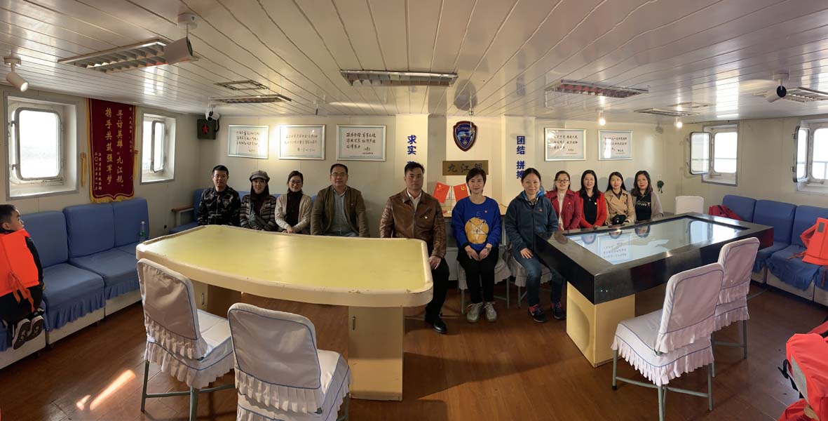 党支部全体党员首先来到位于湖口县石钟山脚下的九江舰爱国主义教育基地。党员们怀着激动的心情登舰参观,从工作人员的讲解中,我们了解到九江舰曾先后参加全军、海军和东海舰队组织的重大军事演习20余次,执行海上巡逻等战备执勤任务60多次,历年共约400余次立功受奖。2018年6月12日,服役43年之久的“九江舰”光荣退役。2019年7月20日,“九江舰”荣归故里,继续为爱国主义教育和国防教育事业发挥她的光和热,让她英雄的航迹和光辉历程得到传承和发扬。站在舰首,眺望江面,看到祖国经济建设繁荣昌盛,看到人民军队建设强大有力,党员同志们倍感自豪,情不自禁的合唱起《我和我的祖国》。