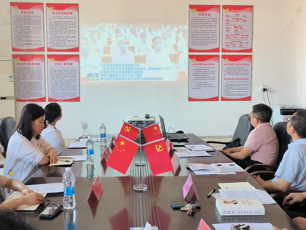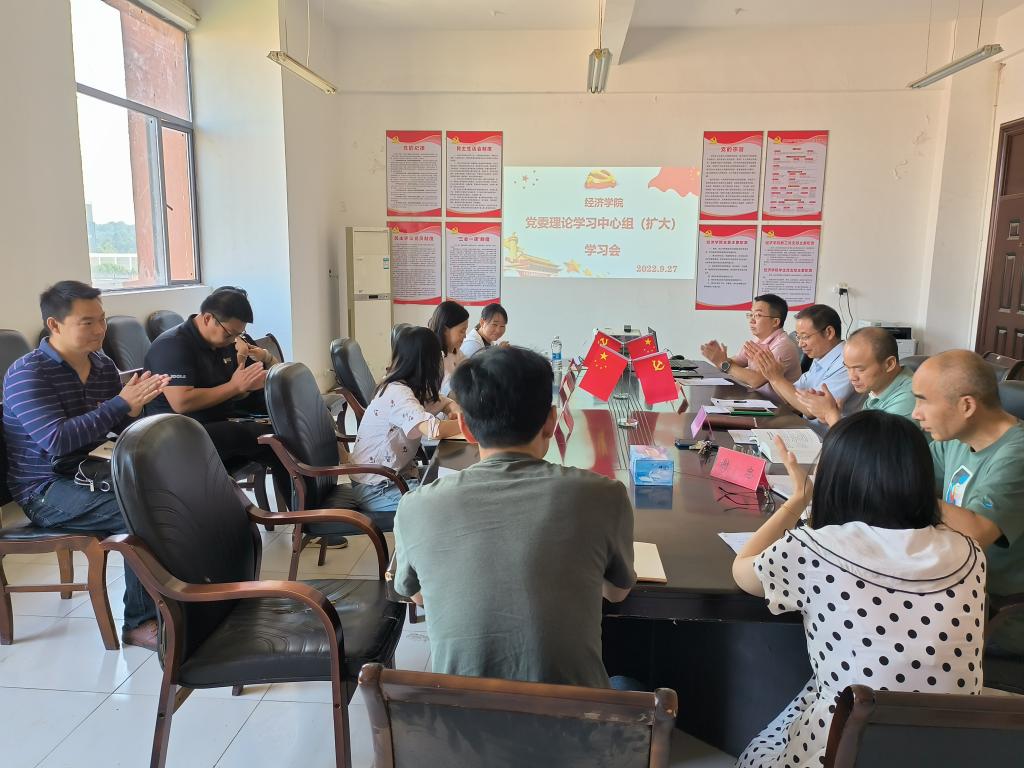 9月27日上午,bat365在线中国官网登录入口在义丰楼619会议室召开党委理论学习中心组第八次(扩大)学习会议,党委书记漆晗东主持会议,院长项益才、党委副书记谢忠、副院长李华、各科室负责人参加了此次学习会。管理学院、法学院、外语学院和旅游学院四个兄弟学院的组织员列席旁听。