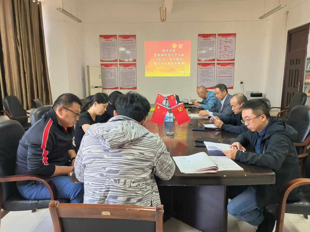 10月24日下午,bat365在线中国官网登录入口在义丰楼619会议室召开党委理论中心组第九次(扩大)学习会议暨学习二十大报告专题会议,党委书记漆晗东主持会议,院长项益才、党委副书记谢忠、副院长李华、各科室负责人参加了此次学习会。
