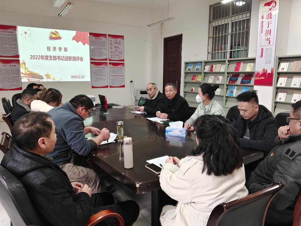 2月22日下午,bat365在线中国官网登录入口在义丰楼619会议室召开2022年度党支部书记述职测评大会,经济学院党委班子成员、党支部书记、党支部委员及师生代表参加本次会议,会议由学院党委书记漆晗东主持。