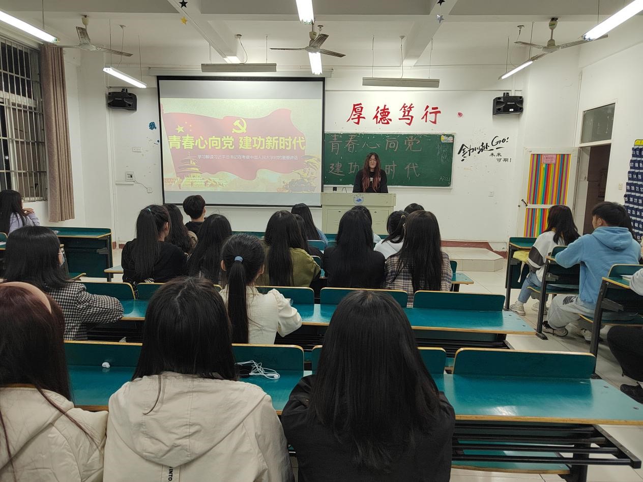 主讲人向同学们讲解了习近平总书记在中国人民大学考察调研的重要讲话,强调了建设社会主义现代化强国是我国一项具有艰巨性和长期性的任务,呼吁青年群体肩负起国家繁荣和民族复兴的重任,不断奋斗,努力拼搏,为社会主义建设作贡献。