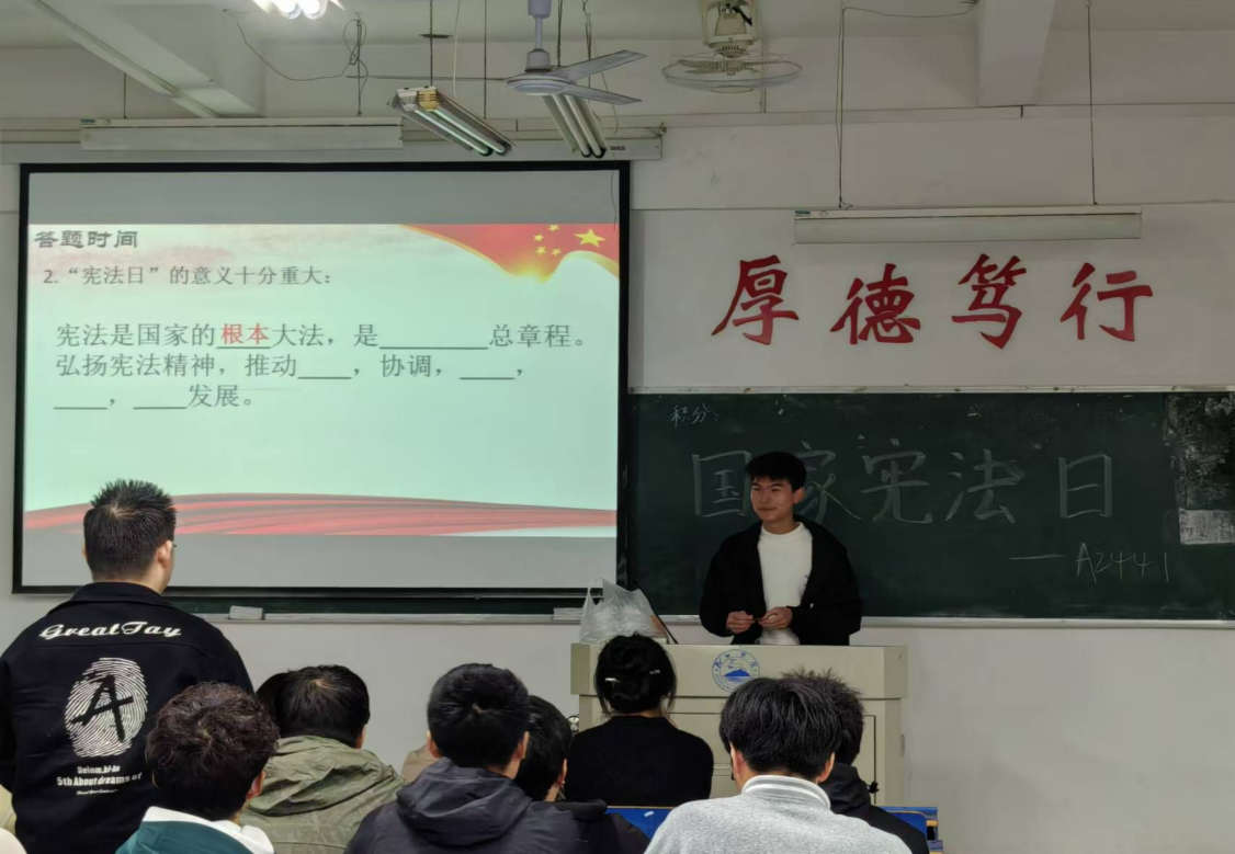 为增强同学们的宪法意识,大力弘扬宪法精神,营造尊崇宪法、学习宪法、维护宪法、践行宪法的浓厚氛围。12月1日,bat365在线中国官网登录入口特在义丰楼开展以“弘扬宪法精神,共筑法制青春”为主题的团日活动。