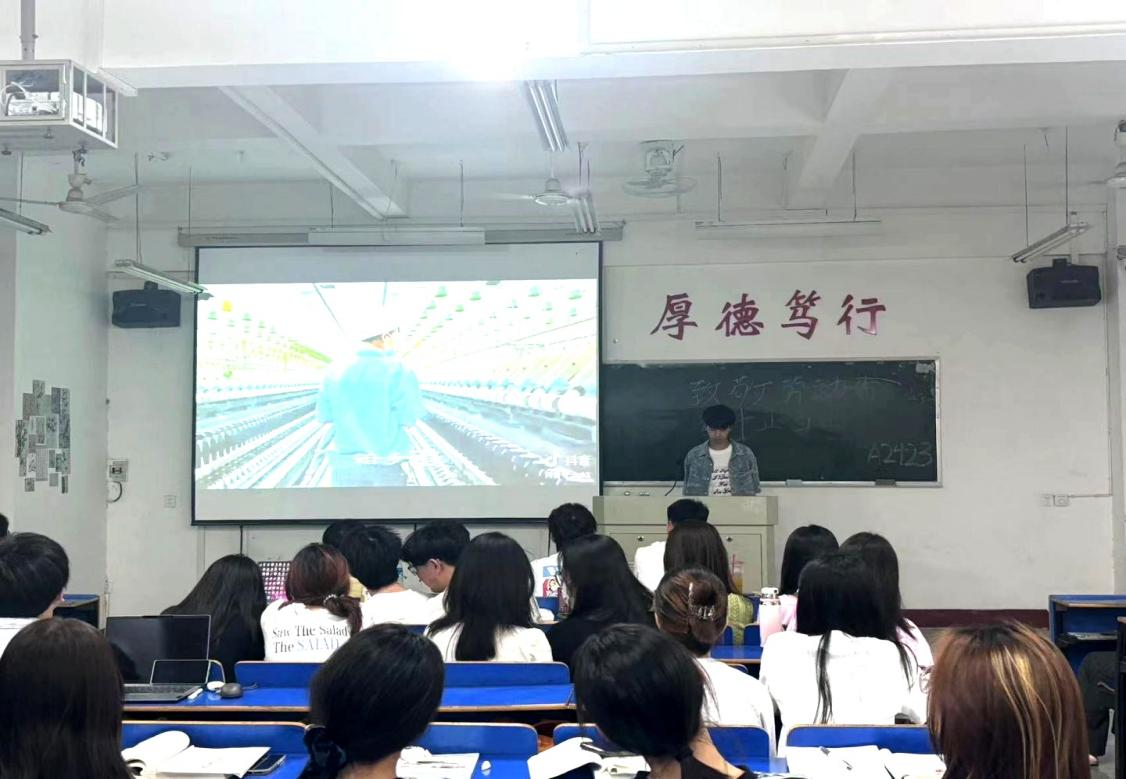 本次活动通过政策解读、案例分享、互动讨论等形式,带领同学们深刻理解劳动的时代内涵,激发“以奋斗为青春底色”的责任感与使命感。活动伊始,主讲人以PPT和视频的形式,带领同学们学习和了解党的二十大报告中关于劳动的重要论述,并结合相关劳模事例阐述关于劳动的重要意义。“铁人”王进喜“宁肯少活二十年,拼命也要拿下大油田”的拼搏事迹和“杂交水稻之父”袁隆平“让所有人远离饥饿”的研究事迹,让同学们认识到:劳动精神的核心始终是爱岗敬业、争创一流、艰苦奋斗、勇于创新、淡泊名利、甘于奉献。在活动互动环节中,同学们有感而发:以前总觉得“劳模”离我们很远,今天看到外卖骑手、社区工作者也被称为“新时代劳动者”,这就告诉我们如果能用心做好本职工作,平凡岗位也可以发光发热。