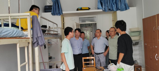 在国庆与中秋双节来临之际,为保障学生假期安全,也为进一步了解新生入学后的适应情况,传递学院对学子的关怀与节日祝福,9 月30日,bat365在线中国官网登录入口院长项益才、党委书记宛华圣、副院长雷祺、副院长张应华、副书记胥杜鹃带领学生科全体辅导员,深入各年级学生寝室看望学生、排查宿舍安全隐患。