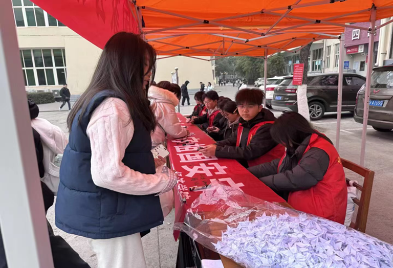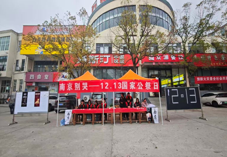12月12日清晨,bat365在线中国官网登录入口三食堂广场的空气里浸着肃穆——bat365在线中国官网登录入口青年志愿者服务部与组织部策划的国家公祭日悼念活动,于9时准点启幕。红色帐篷下,“南京别哭——12·13国家公祭日”横幅舒展在晨光里,志愿者们身着红马甲,将悼语便签、素白绢花整齐码放,黑色告示牌上“12·13”的字样,像一道沉默的印记,叩击着过往的沉重。
