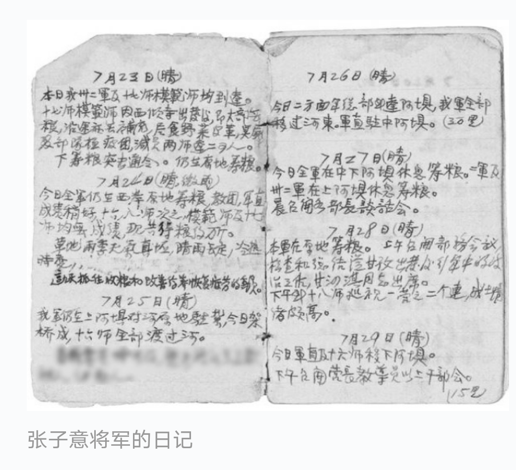 张子意、左齐、王恩茂等人的日记里也记载了红军每日行进的路程,四五十里并不是红军行进的最远距离。左齐记述:“7月13日,……行军约120里到绒玉。”王恩茂写道:“从唐牙沟到西倾寺,其名60里,实则100里还有余。”