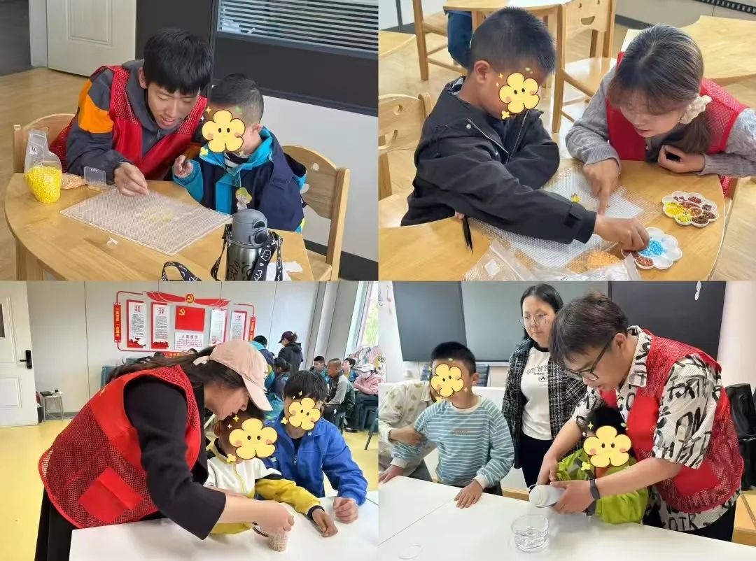 在集市的举办过程中,志愿者们轻松与孩子们拉近距离,和他们一起做手工,与孩子们结对交流,倾听他们的心声,鼓励他们勇敢表达自我。孩子们的纯真与善良深深触动了每一位志愿者的心,而志愿者们的热情与关怀也使得孩子们绽放出灿烂的笑容,渐渐敞开心扉。